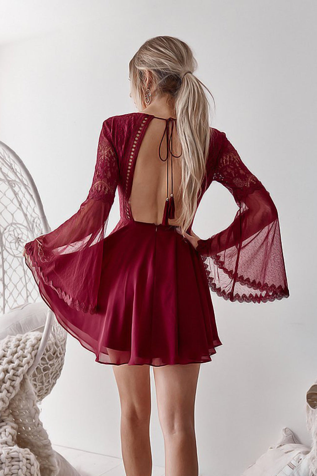 Black Long Sleeve Sheer Lace Mini Dress With Frilly Hem