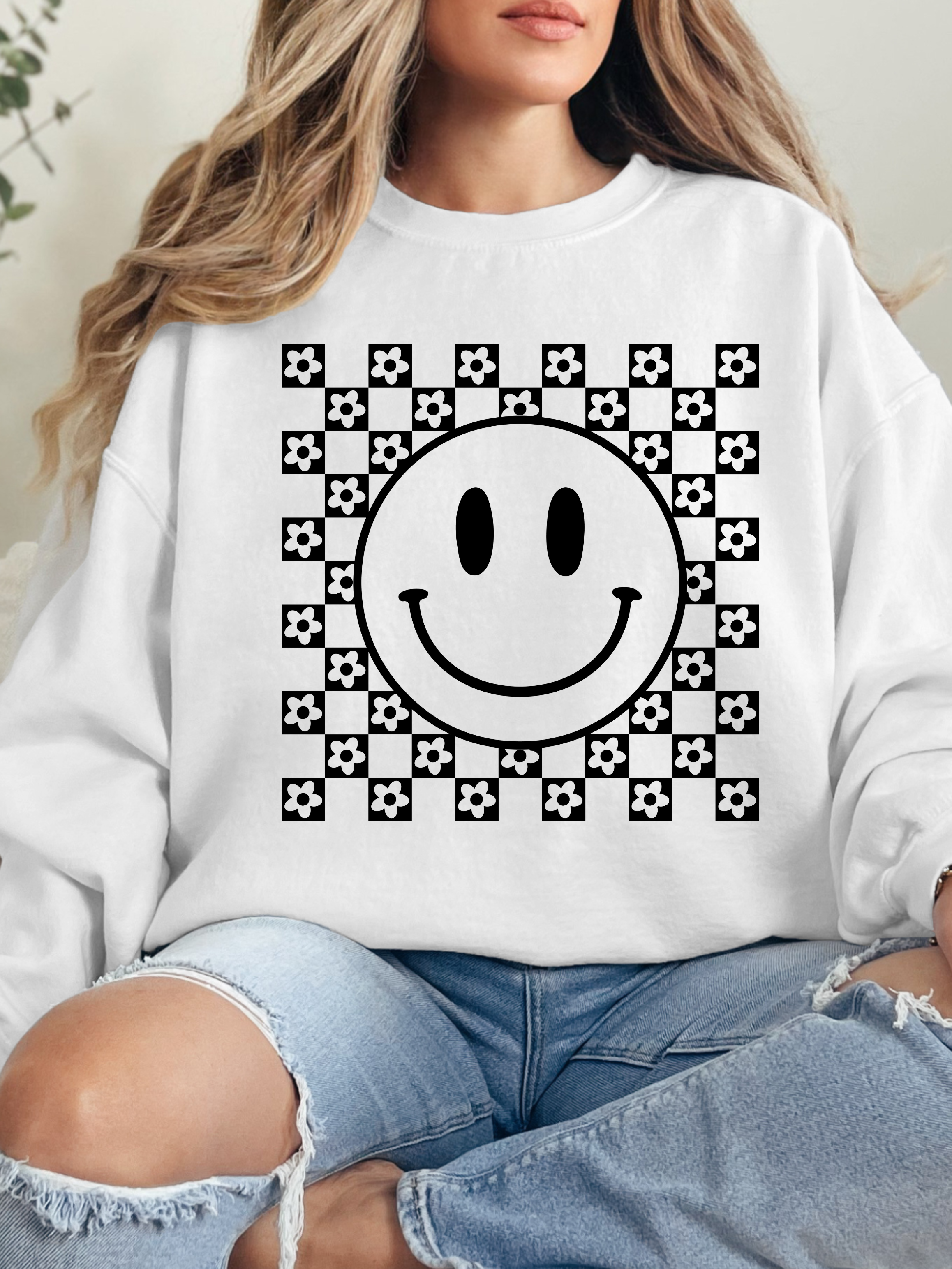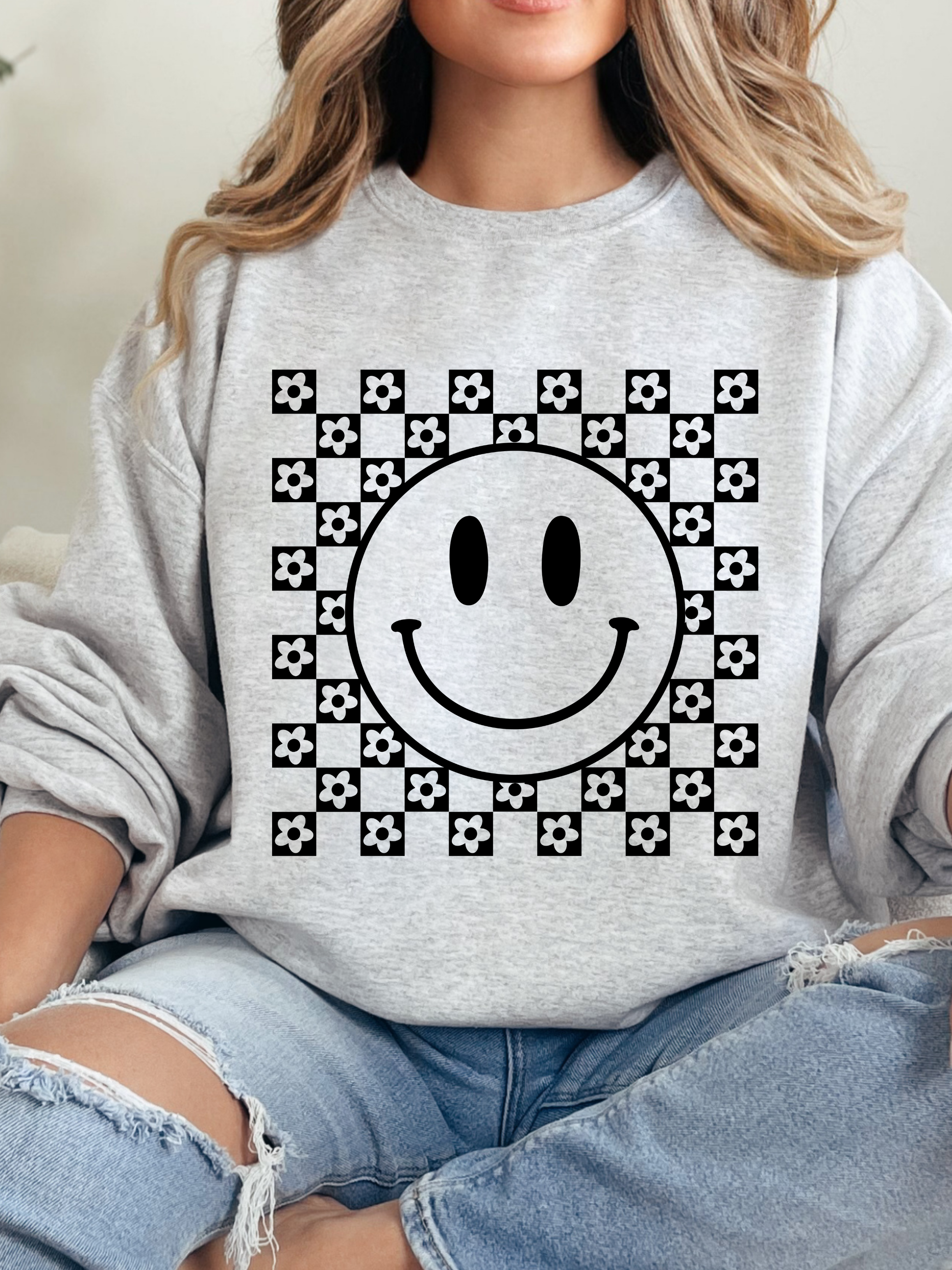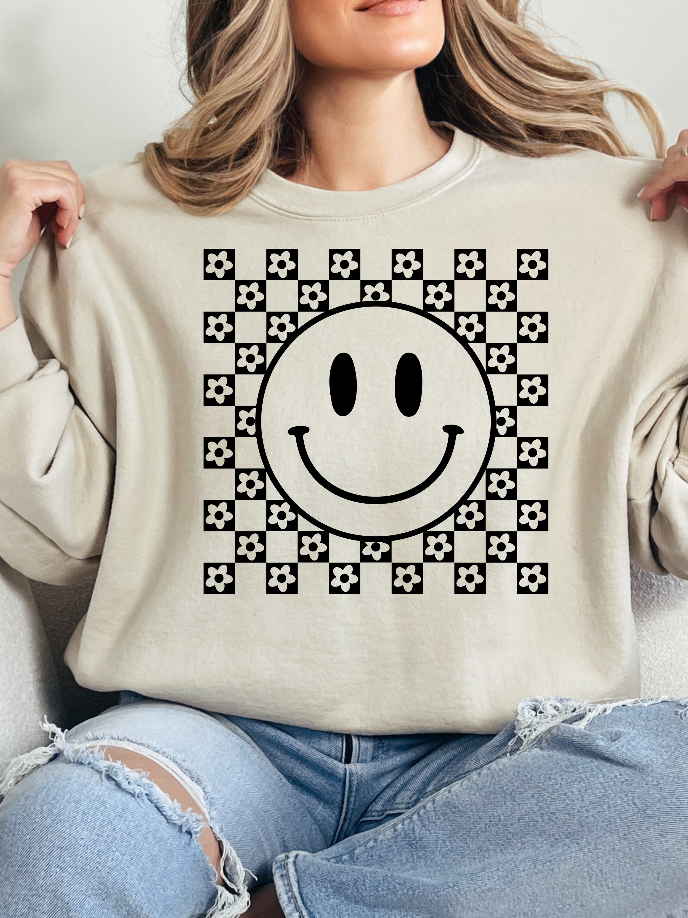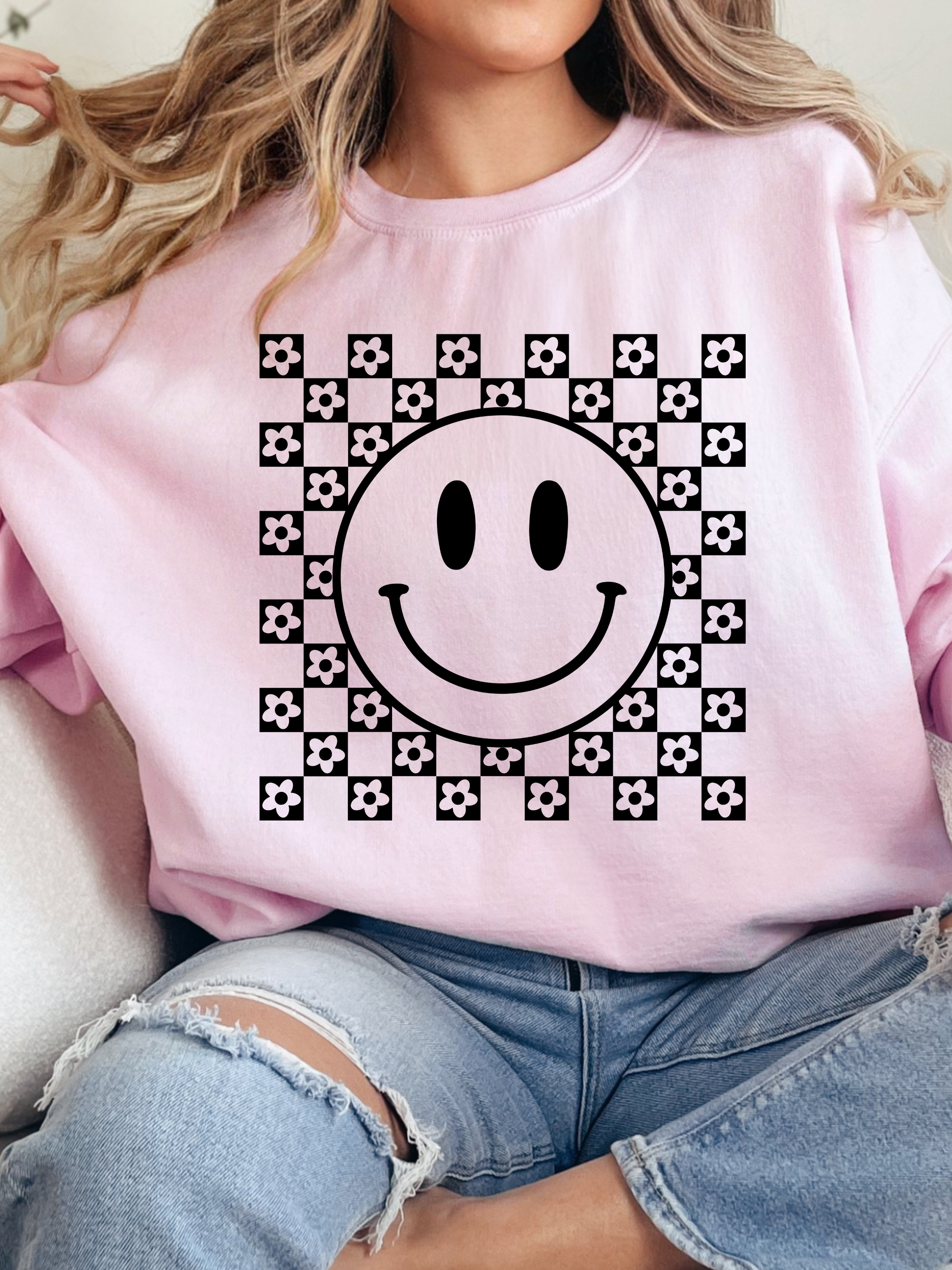 - Non distressed checkered smile graphic